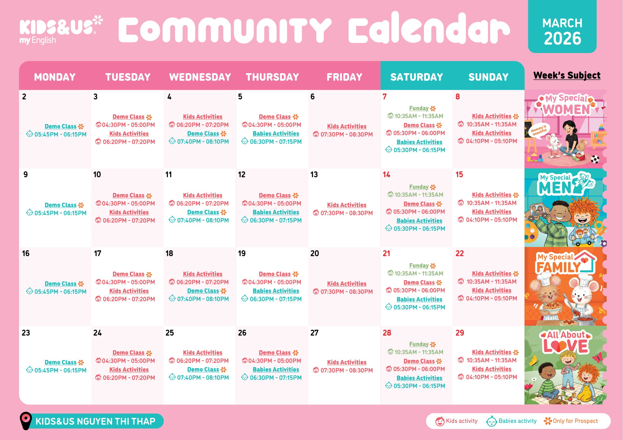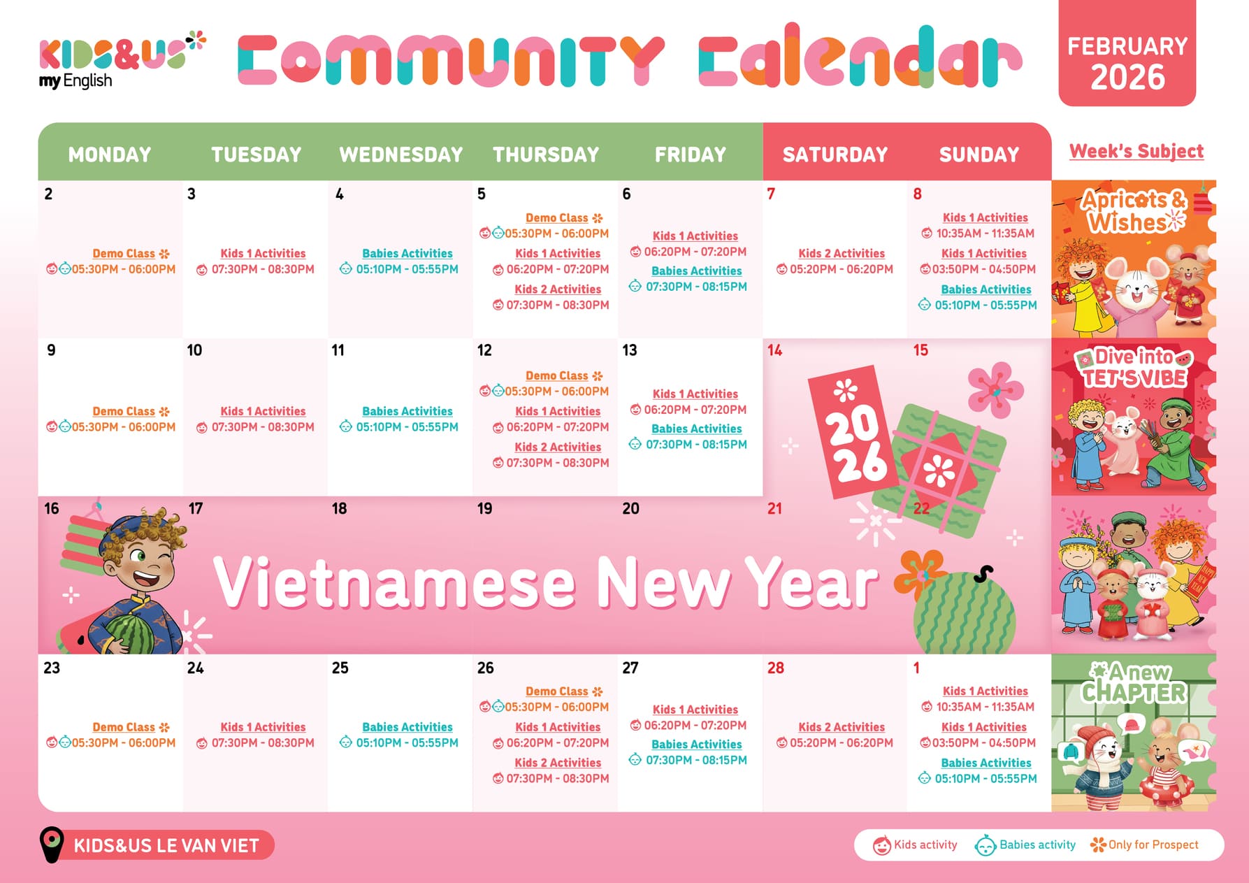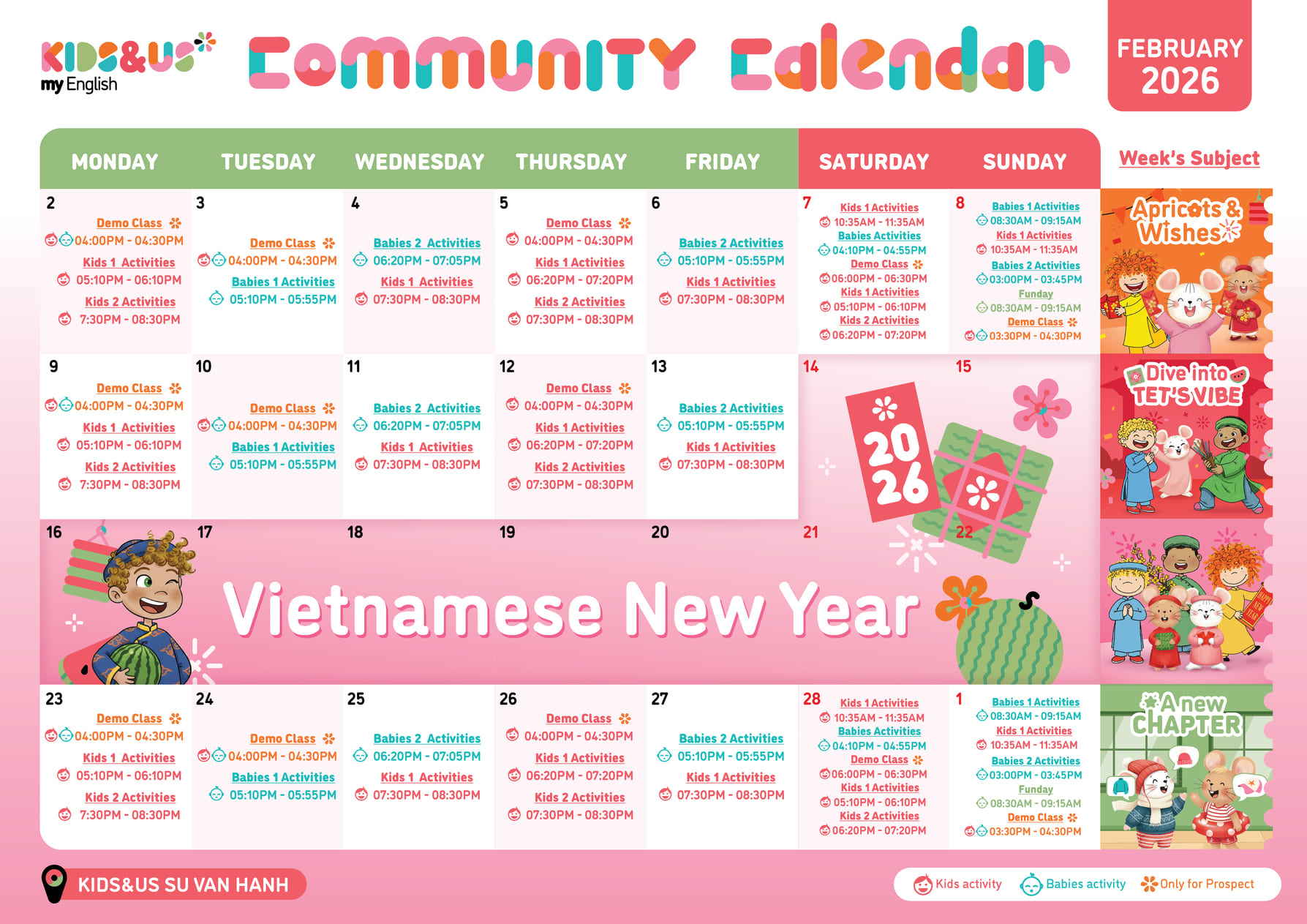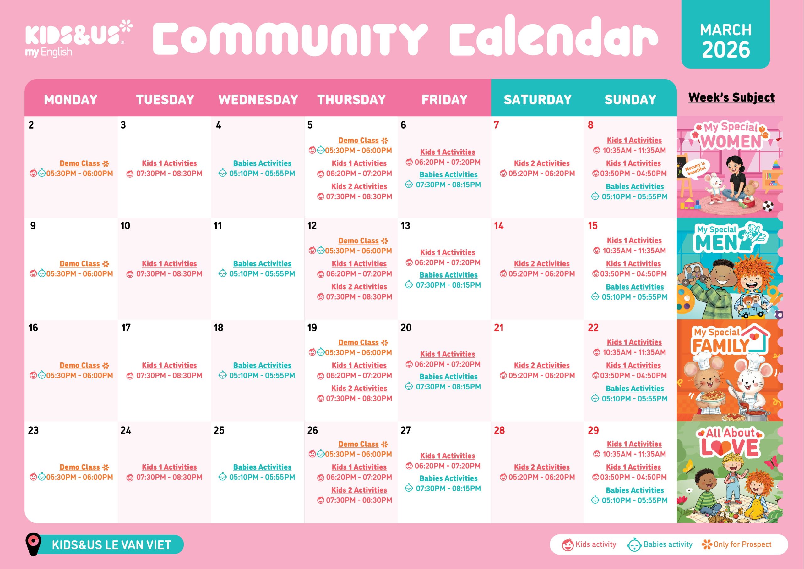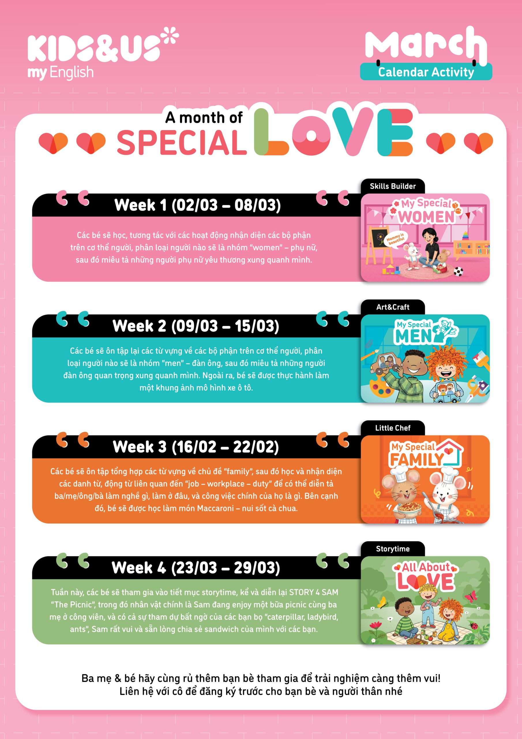 Tại Kids&Us, tiếng Anh không chỉ được dùng trong lớp học, chúng tôi đã xây dựng nhiều hoạt động bằng tiếng Anh để củng cố trải nghiệm học tập cho học viên.