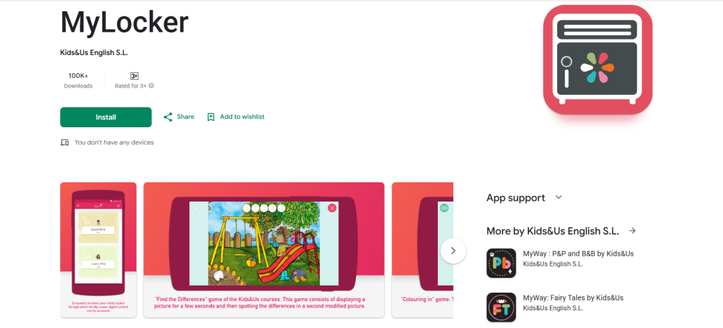 Khác với các ứng dụng giải trí thuần túy, bộ đôi ứng dụng MyLocker và MyKids là “trợ thủ” đắc lực được thiết kế bởi các chuyên gia ngôn ngữ của Kids&Us, bám sát phương pháp giáo dục Natural English.