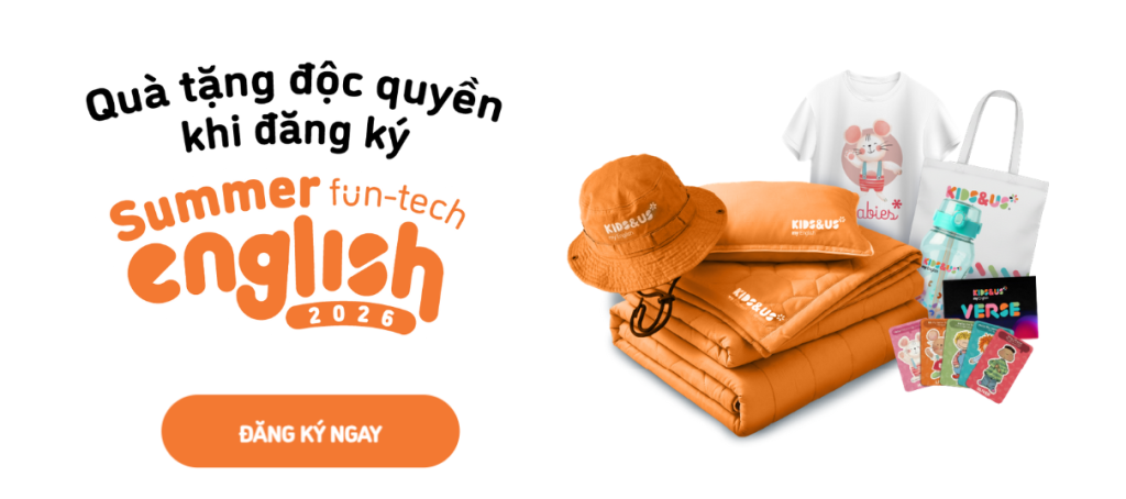 Ba mẹ hãy nhanh tay đăng ký trại hè tiếng anh Summer Fun-Tech 2026 tại Kids&Us để mang đến cho con một mùa hè bổ ích, ý nghĩa và đáng nhớ. Sĩ số lớp học giới hạn, hãy đăng ký ngay hôm nay và nhận những quà tặng độc quyền từ Kids&Us.